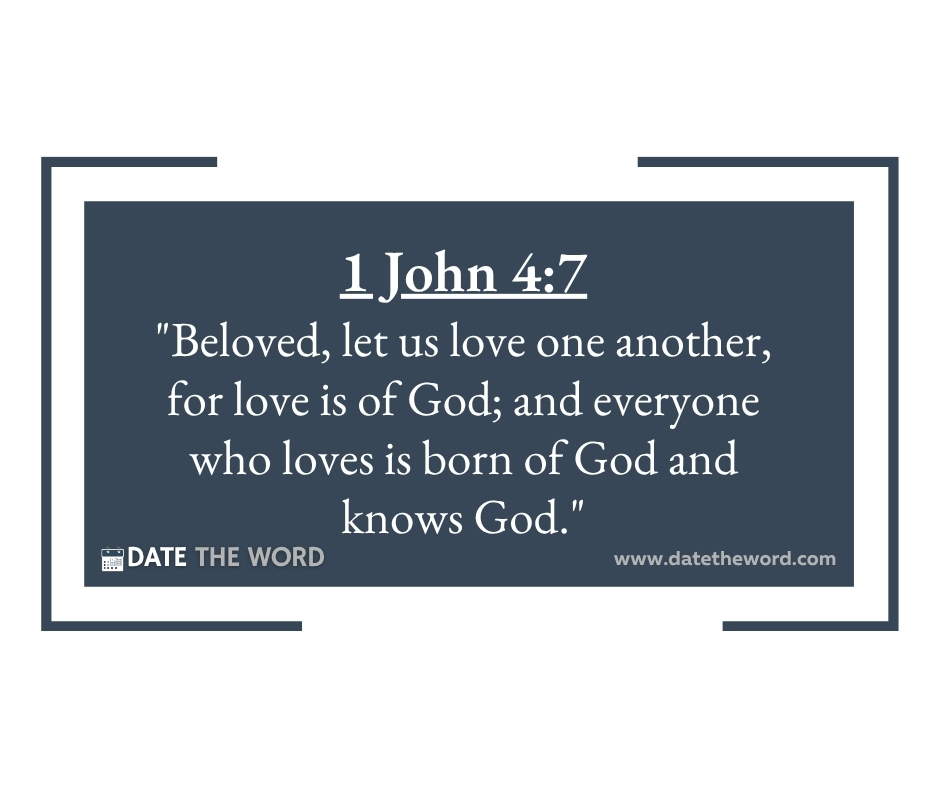 1 John 4:7 Beloved, let us love one another, for love is of God; and everyone who loves is born of God and knows God.