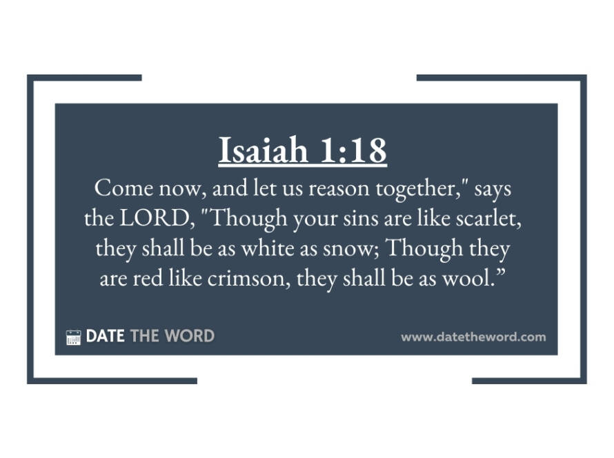 Isaiah 1:18 “Come now, and let us reason together,” Says the LORD, “Though your sins are like scarlet, They shall be as white as snow; Though they are red like crimson, They shall be as wool.”