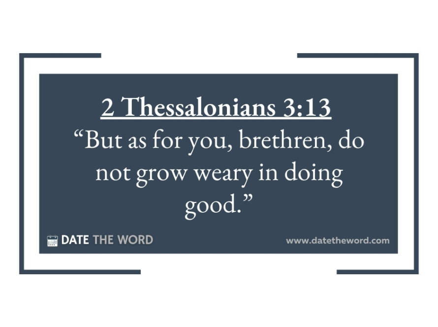 2 Thessalonians 3:13 “But as for you, brethren, do not grow weary in doing good.” We occasionally need to be reminded of a very important truth as we carry out our assignments from the Lord and that truth is we can grow weary in doing good! Please let that truth sink in. You can become tired, exhausted, worn down, and worn out doing good. While we think the way of the wicked is hard (and it is according to Proverbs 13:15) doing good can be hard on you. As we work we must also have intentional periods of rest. Jesus told His disciples after