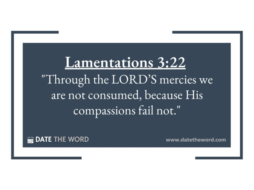 Lamentations 3:22 “Through the LORD’S mercies we are not consumed, because His compassions fail not.” I don’t know about you but it is difficult to understand and truly comprehend God’s feelings toward sin. God’s Word conveys that God is holy. He is righteous. He is pure. It teaches, clearly teaches, that God is a consuming God as Hebrews 12:29 says, “For our God is a consuming fire.” God’s Word teaches that He pours out His wrath – yes – wrath on the sons of disobedience. For instance, we read in Colossians 3:6, “Because of these things the wrath of God is