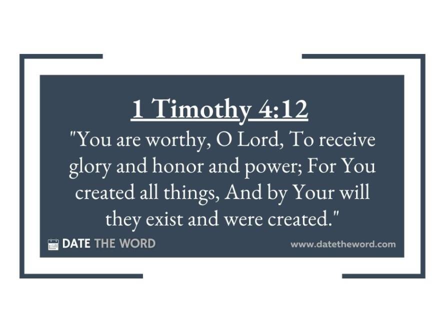 Revelations 4:11 “”You are worthy, O Lord, To receive glory and honor and power; For You created all things, And by Your will they exist and were created.””