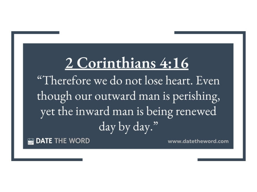 2 Corinthians 4:16 Therefore we do not lose heart. Even though our outward man is perishing, yet the inward man is being renewed day by day.