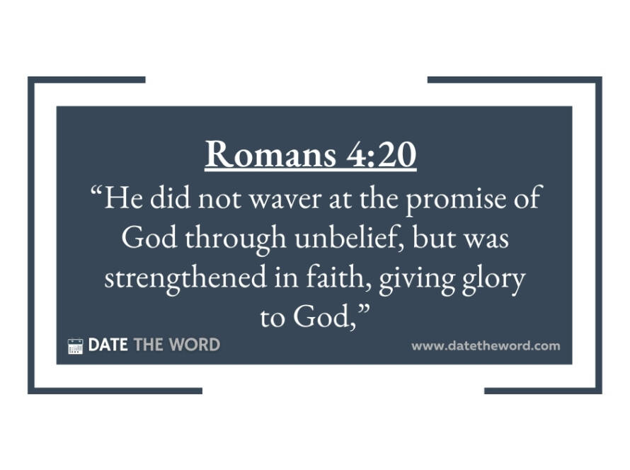 Romans 4:20 He did not waver at the promise of God through unbelief, but was strengthened in faith, giving glory to God,