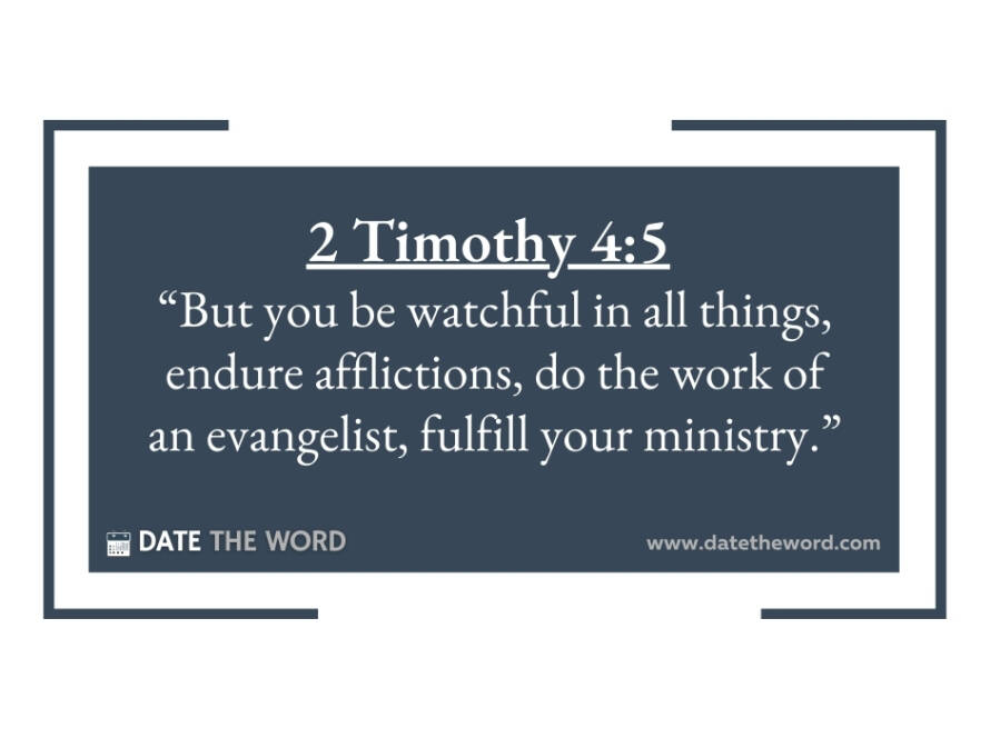 2 Timothy 4:5 But you be watchful in all things, endure afflictions, do the work of an evangelist, fulfill your ministry.
