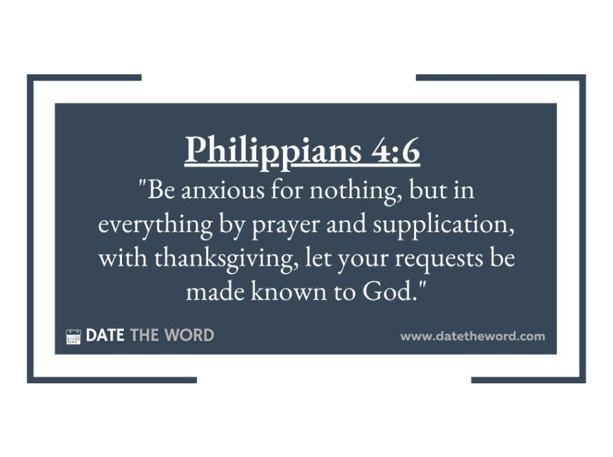 Philippians 4:6 Be anxious for nothing, but in everything by prayer and supplication, with thanksgiving, let your requests be made known to God;