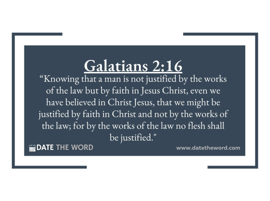 Galatians 2:16 “Knowing that a man is not justified by the works of the law but by faith in Jesus Christ, even we have believed in Christ Jesus, that we might be justified by faith in Christ and not by the works of the law; for by the works of the law no flesh shall be justified.” We find in the Bible that a person is NOT – listen- IS NOT saved by works!! WORKS DO NOT WORK! The opening sentence of Galatians 2:16 says, “Knowing that a man is NOT justified (saved) by the works of the law” and