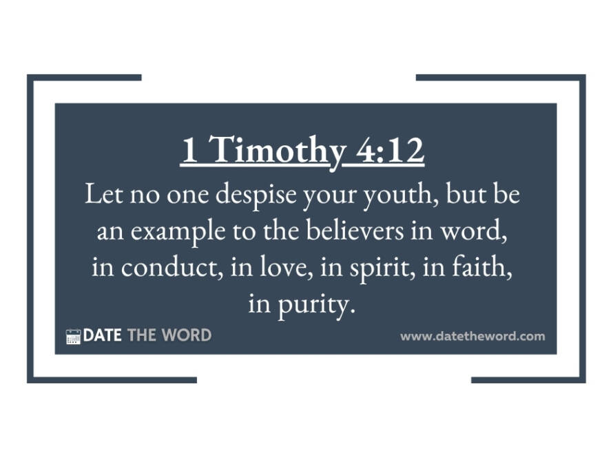 1 Timothy 4:12 Let no one despise your youth, but be an example to the believers in word, in conduct, in love, in spirit, in faith, in purity.