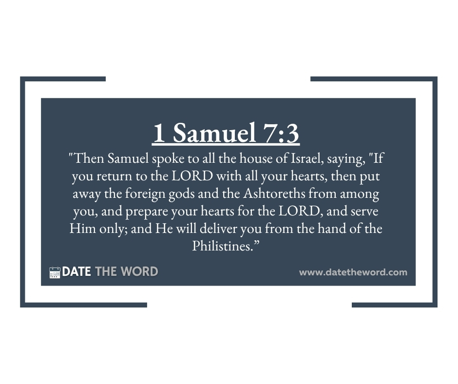 1 Samuel 7:3 “Then Samuel spoke to all the house of Israel, saying, “If you return to the LORD with all your hearts, then put away the foreign gods and the Ashtoreths from among you, and prepare your hearts for the LORD, and serve Him only; and He will deliver you from the hand of the Philistines.””