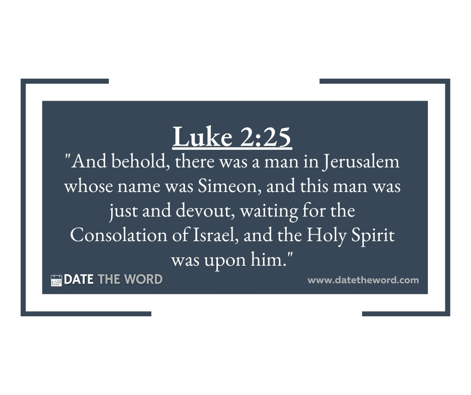 Luke 2:25 “And behold, there was a man in Jerusalem whose name was Simeon, and this man was just and devout, waiting for the Consolation of Israel, and the Holy Spirit was upon him.”