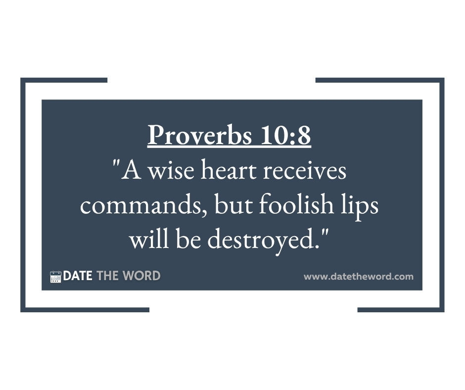 Proverbs 10:8 “A wise heart receives commands, but foolish lips will be destroyed.”