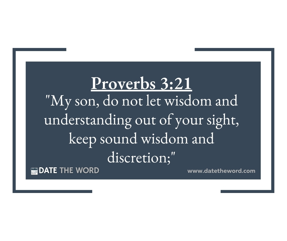 Proverbs 3:21 “My son, do not let wisdom and understanding out of your sight, keep sound wisdom and discretion;”