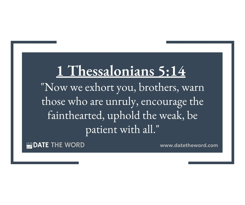 1 Thessalonians 5:14 “Now we exhort you, brothers, warn those who are unruly, encourage the fainthearted, uphold the weak, be patient with all.”
