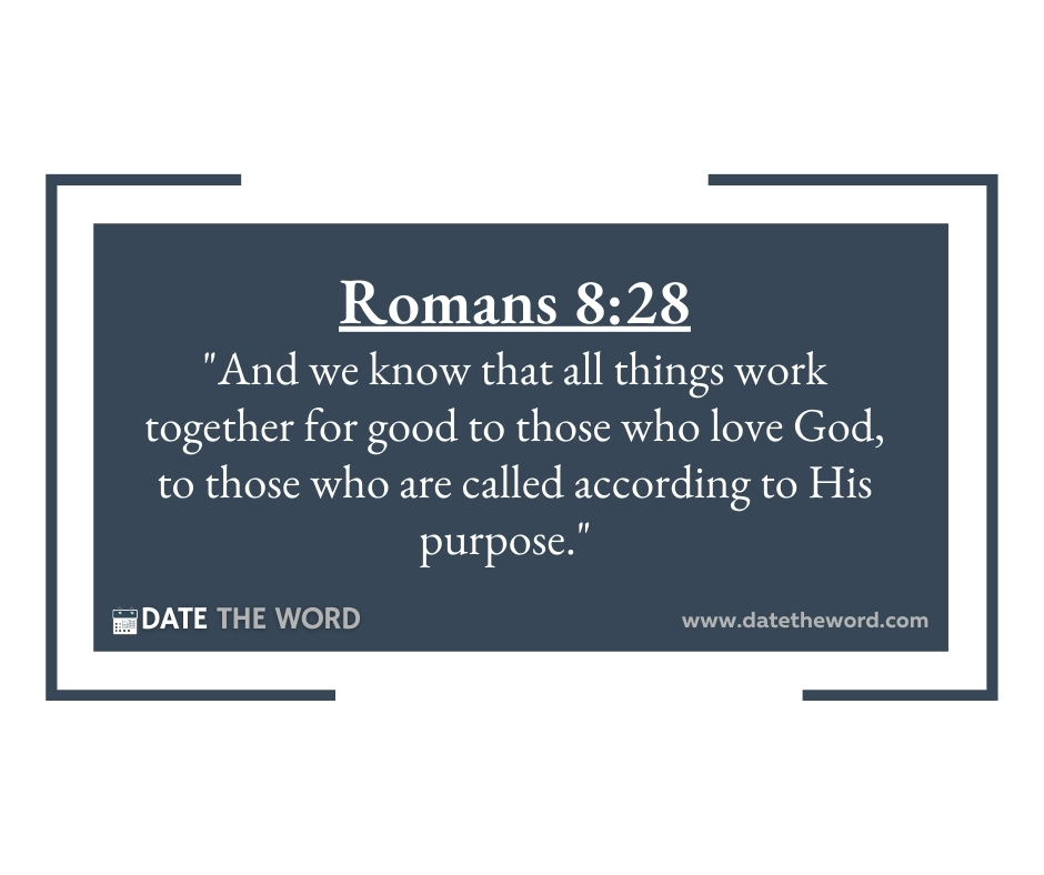 Romans 8:28 “And we know that all things work together for good to those who love God, to those who are called according to His purpose.”