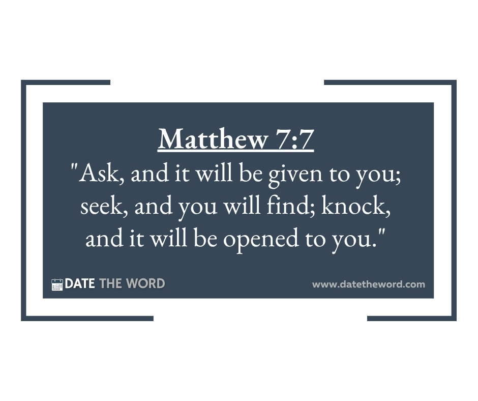 Matthew 7:7 “Ask, and it will be given to you; seek, and you will find; knock, and it will be opened to you.”