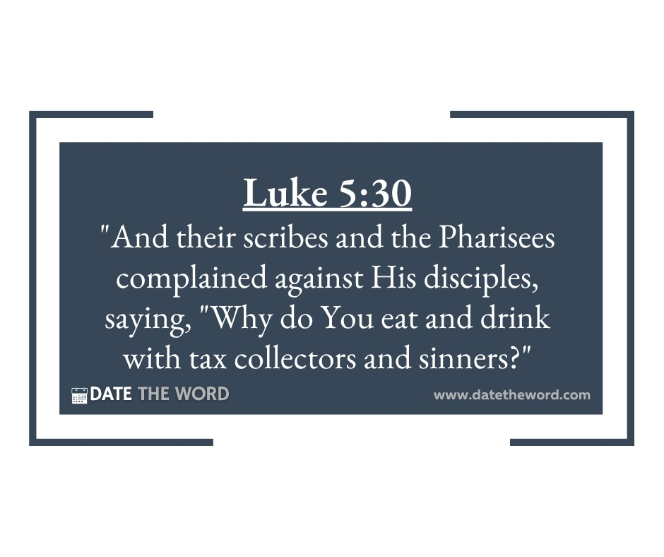 Luke 5:30 “And their scribes and the Pharisees complained against His disciples, saying, “Why do You eat and drink with tax collectors and sinners?”