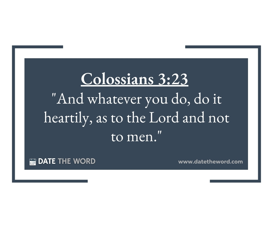 Colossians 3:23 “And whatever you do, do it heartily, as to the Lord and not to men.”
