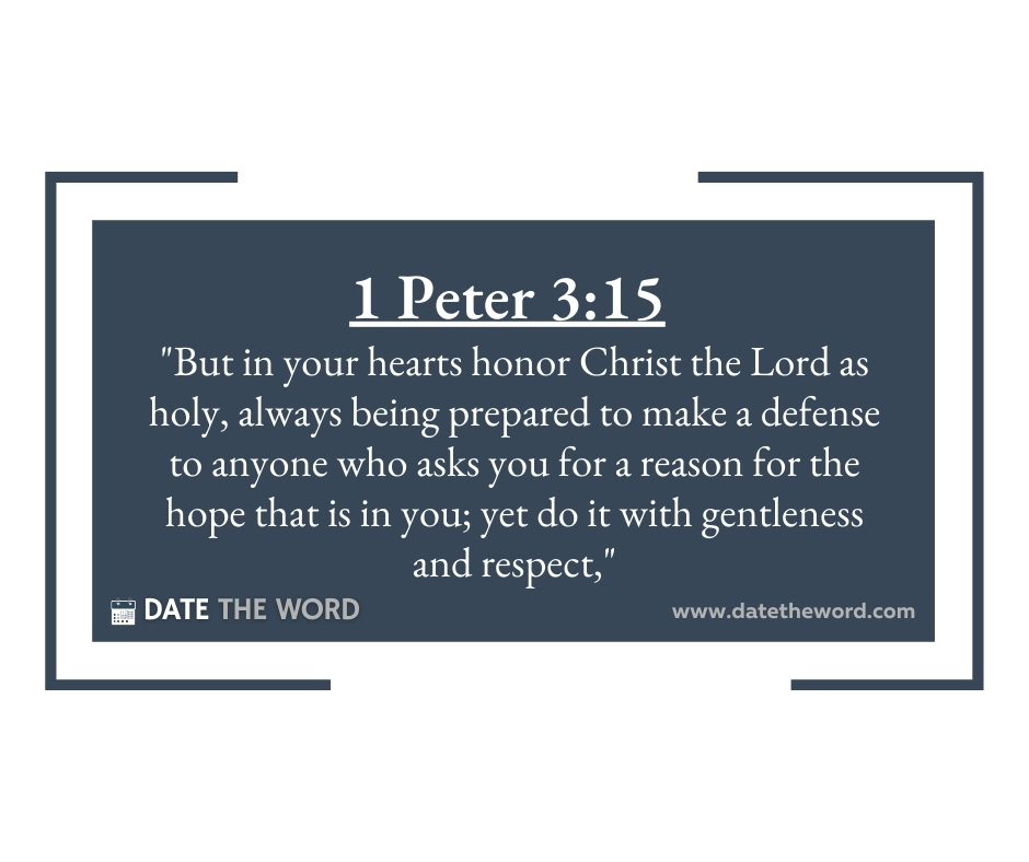1 Peter 3:15 “But in your hearts honor Christ the Lord as holy, always being prepared to make a defense to anyone who asks you for a reason for the hope that is in you; yet do it with gentleness and respect,”