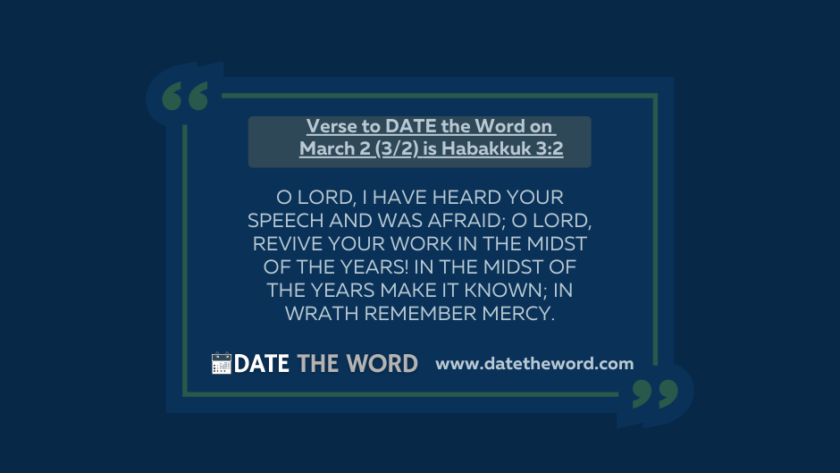 Our verse to DATE the Word on March 2 (3/2/) is Habakkuk 3:2Habakkuk 3:2 says, “O LORD, I have heard your speech and was afraid; O LORD, revive Your work in…