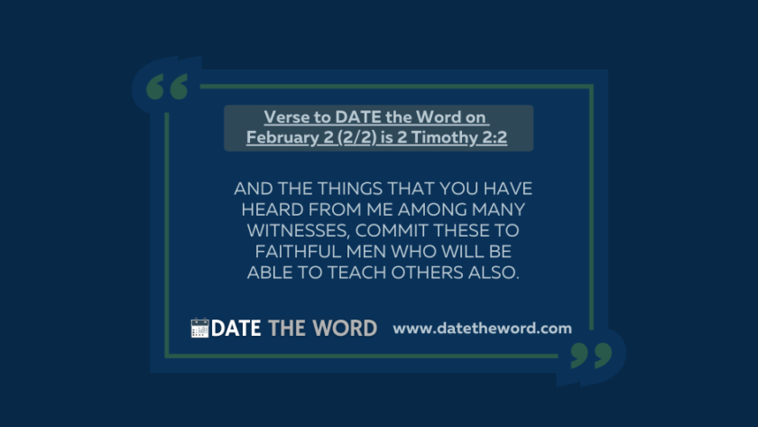 Our verse to DATE the Word on February 2 (2/2) is 2 Timothy 2:22 Timothy 2:2 says, "And the things that you have heard from me among many witnesses, commit…