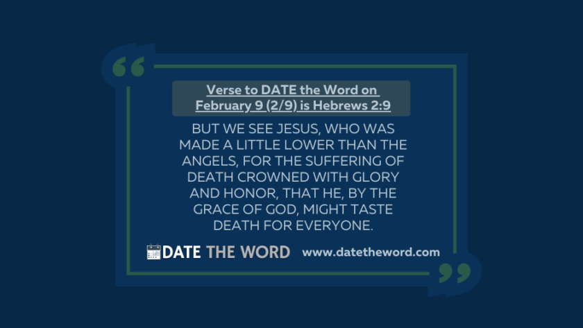 Our verse to DATE the Word on February 9 (2/9) is Hebrews 2:9Hebrews 2:9 says, “But we see Jesus, who was made a little lower than the angels, for the suffering of death…