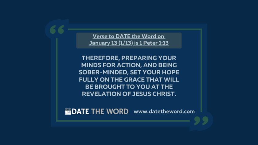 Our verse to DATE the Word on January 13 (1/13) is 1 Peter 1:131 Peter 1:13 says, "Therefore, preparing your minds for action, and being sober-minded, set your hope fully on…