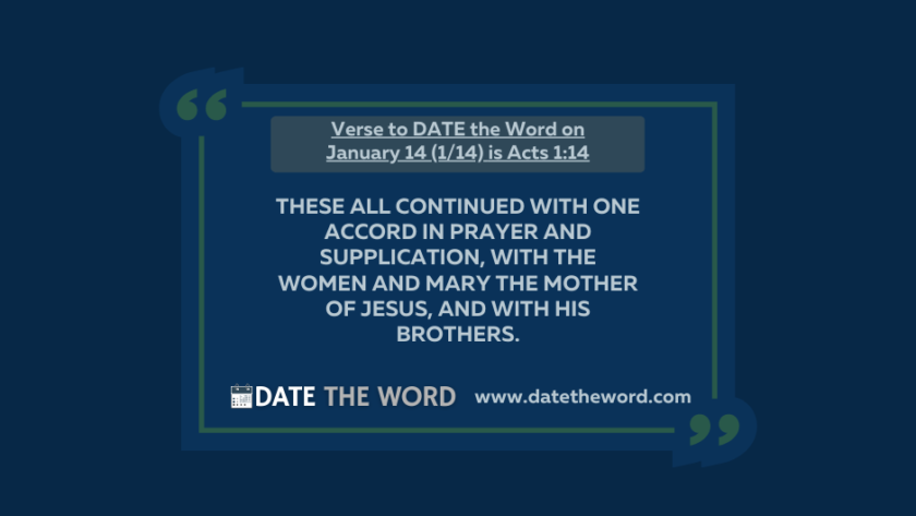 Our verse to DATE the Word on January 14 (1/14) is Acts 1:14Acts 1:14 says, “These all continued with one accord in prayer and supplication, with the women and Mary the mother…