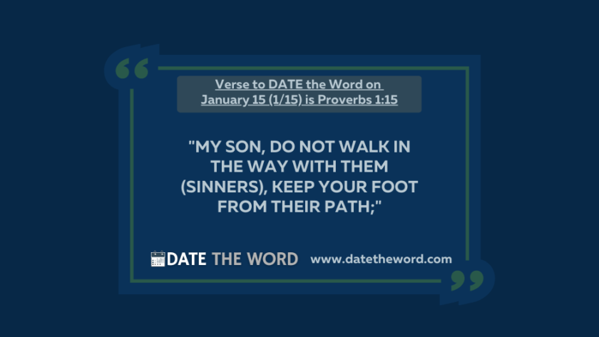 Our verse to DATE the Word on January 15 (1/15) is Proverbs 1:15Proverbs 1:15 says, "My son, do not walk in the way with sinners, keep your foot from their path;"