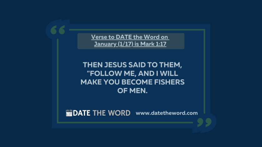 Our verse to DATE the Word on January 17 (1/7) is Mark 1:17Mark 1:17 says, “Then Jesus said to them, "Follow Me, and I will make you become fishers of men."