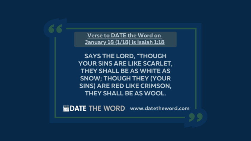Our verse to DATE the Word on January 18 (1/18) is Isaiah 1:18Isaiah 1:18 says, "Come now, and let us reason together," Says the LORD, "Though your sins are like scarlet,…