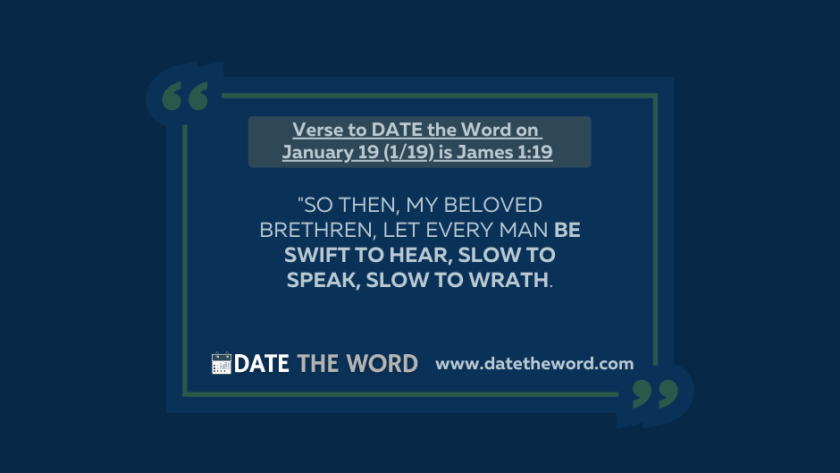 Our verse to DATE the Word on January 19 (1/19) is James 1:19James 1:19 says, "So then, my beloved brethren, let every man be swift to hear, slow to speak, slow…