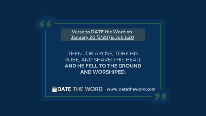 Our verse to DATE the Word on January 20 (1/20) is Job 1:20Job 1:20 says, "Then Job arose, tore his robe, and shaved his head; and he fell to the…