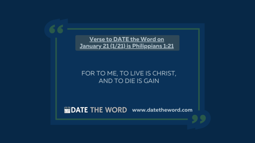 Our verse to DATE the Word on January 21 (1/21)Some verses to DATE the Word on January 21 (1/21) start with Philippians 1:21 "For to me, to live is Christ,…