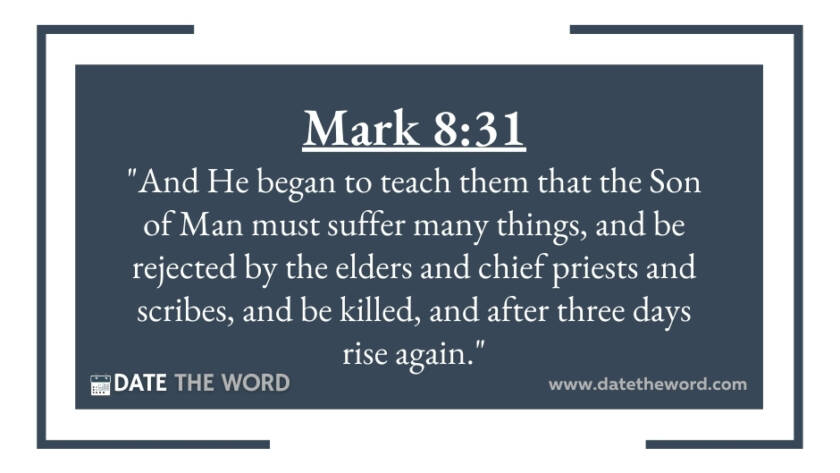 Mark 8:31 "And He began to teach them that the Son of Man must suffer many things, and be rejected by the elders and chief priests and scribes, and be…