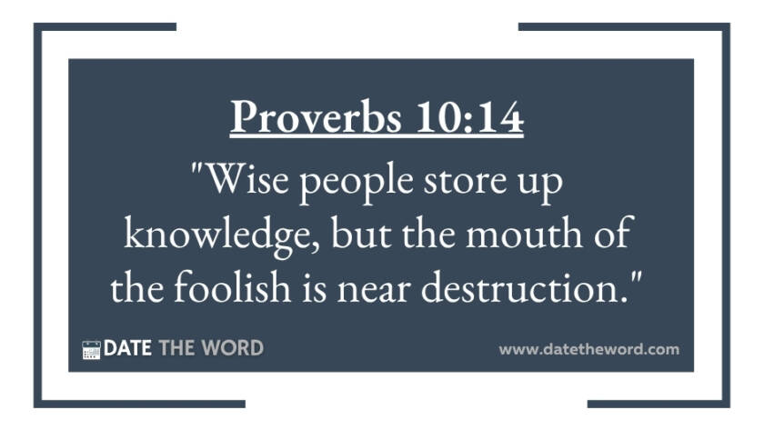 Proverbs 10:14 "Wise people store up knowledge, but the mouth of the foolish is near destruction."
