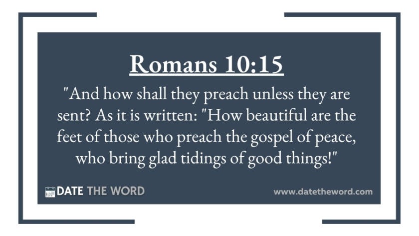 Romans 10:15 "And how shall they preach unless they are sent? As it is written: "How beautiful are the feet of those who preach the gospel of peace, who bring…