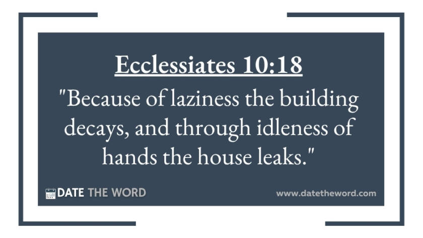 Ecclesiastes 10:18 "Because of laziness the building decays, and through idleness of hands the house leaks."