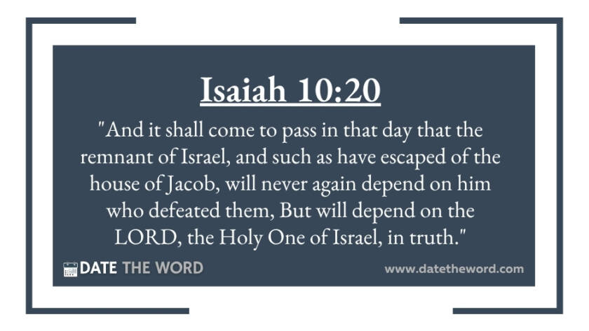 Isaiah 10:20 "And it shall come to pass in that day that the remnant of Israel, and such as have escaped of the house of Jacob, will never again depend…