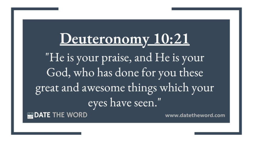 Deuteronomy 10:21 "He is your praise, and He is your God, who has done for you these great and awesome things which your eyes have seen."