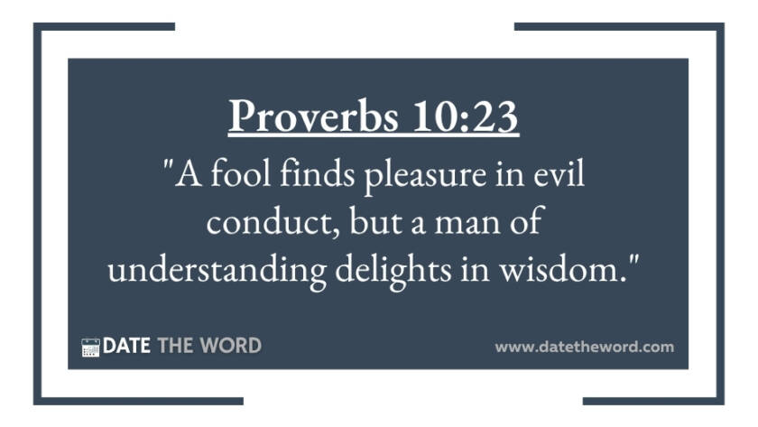 Proverbs 10:23 "A fool finds pleasure in evil conduct, but a man of understanding delights in wisdom."
