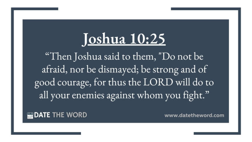 Joshua 10:25 “Then Joshua said to them, "Do not be afraid, nor be dismayed; be strong and of good courage, for thus the LORD will do to all your enemies…