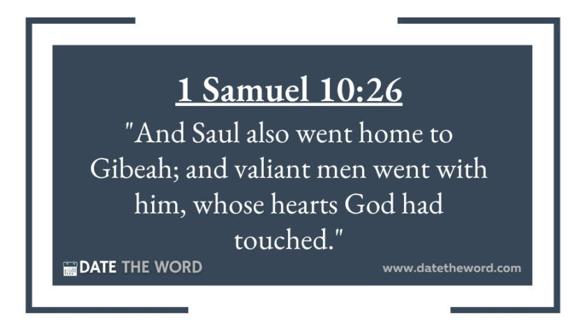 1 Samuel 10:26 "And Saul also went home to Gibeah; and valiant men went with him, whose hearts God had touched."