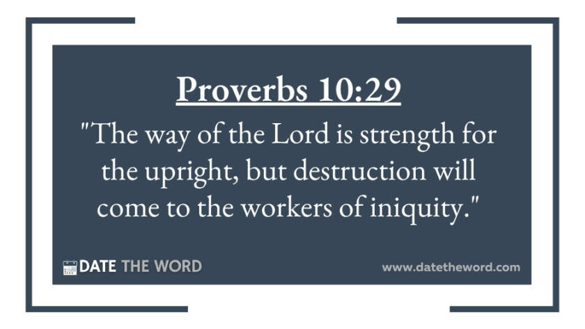 Proverbs 10:29 "The way of the Lord is strength for the upright, but destruction will come to the workers of iniquity."
