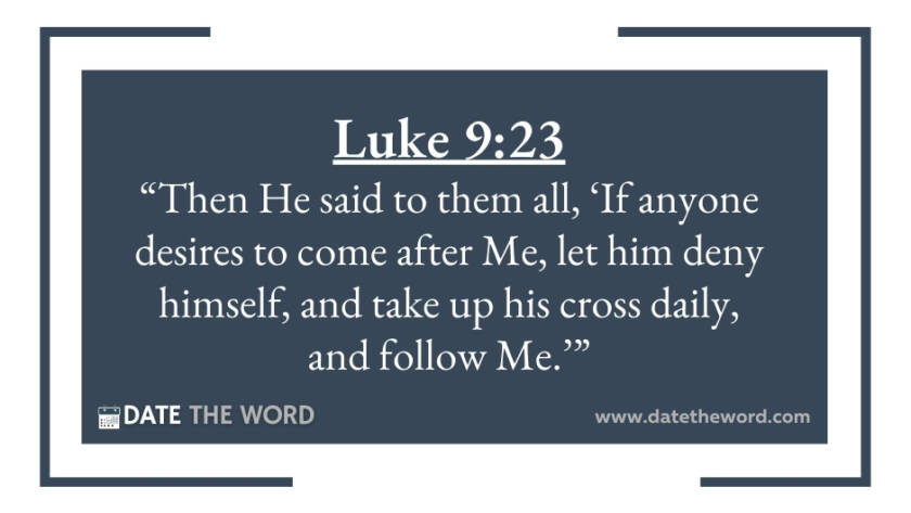 Luke 9:23 “Then He said to them all, ‘If anyone desires to come after Me, let him deny himself, and take up his cross daily, and follow Me.’”