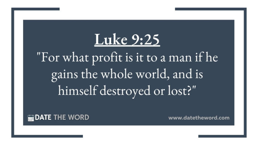 Luke 9:25 "For what profit is it to a man if he gains the whole world, and is himself destroyed or lost?"