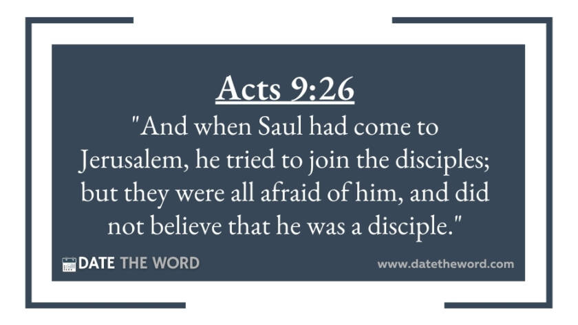 Acts 9:26 "And when Saul had come to Jerusalem, he tried to join the disciples; but they were all afraid of him, and did not believe that he was a…