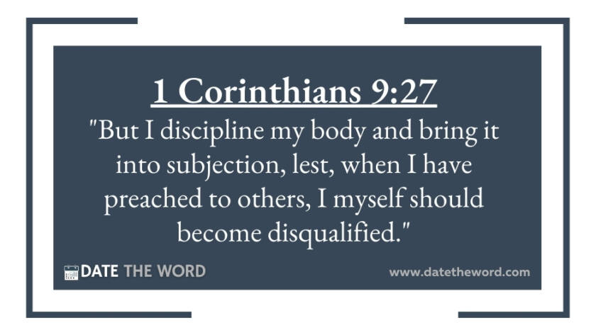 1 Corinthians 9:27 "But I discipline my body and bring it into subjection, lest, when I have preached to others, I myself should become disqualified."