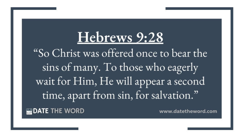 Hebrews 9:28 “So Christ was offered once to bear the sins of many. To those who eagerly wait for Him, He will appear a second time, apart from sin, for…