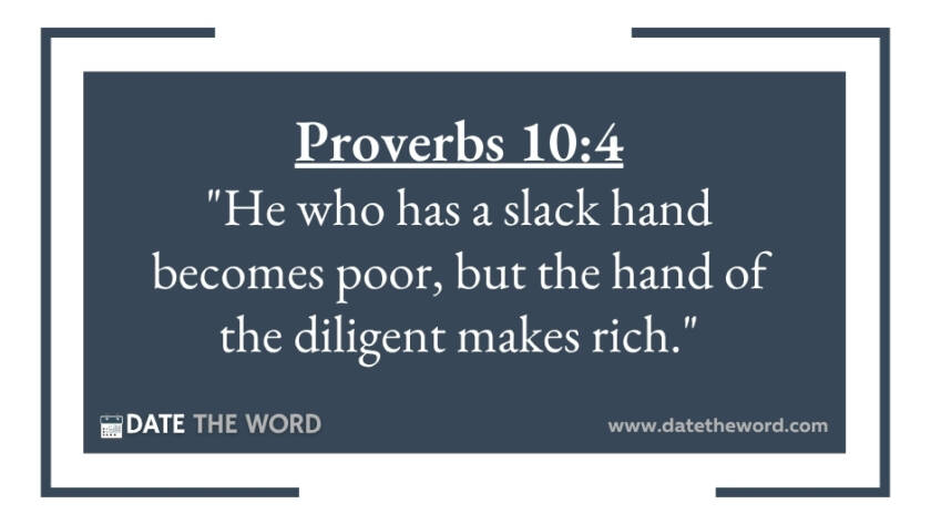 Proverbs 10:4 "He who has a slack hand becomes poor, but the hand of the diligent makes rich."