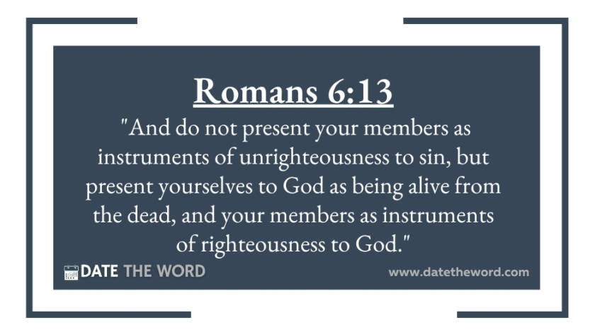 Romans 6:13 "And do not present your members as instruments of unrighteousness to sin, but present yourselves to God as being alive from the dead, and your members as instruments…