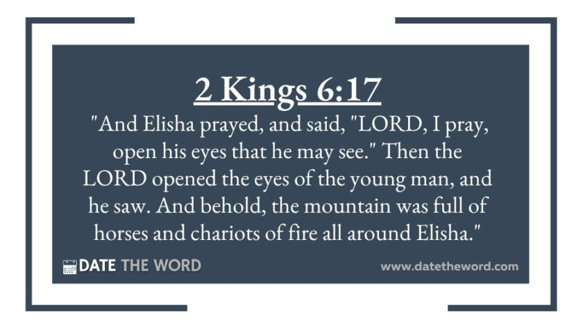 2 Kings 6:17 "And Elisha prayed, and said, "LORD, I pray, open his eyes that he may see." Then the LORD opened the eyes of the young man, and he…